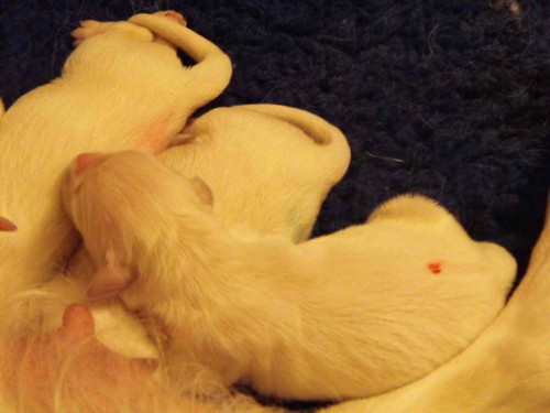 Wir freuen uns sehr, dass wir die nächsten Wochen mit diesen kleinen Krabbelmäusen verbringen dürfen und sind sehr stolz auf unsere Aischa, die diese Geburt wirklich prima gemeistert hat.